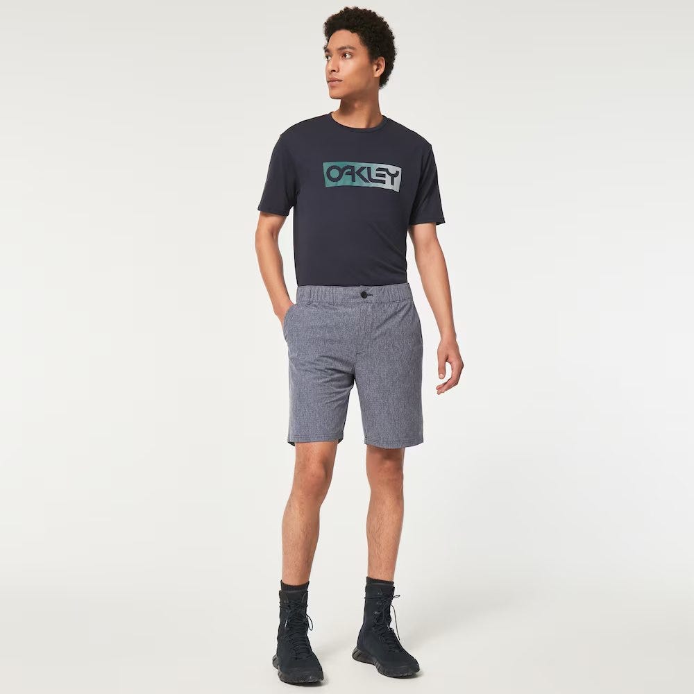 Advanced moisture wicking management and full-motion 4-way stretch make this Adventure Chino Short ideal for the boardwalk or any casual setting. An elastic waistband ensures all-day comfort, and the unique ma©lange ripstop fabric provides added durability. Side pockets and a welt back pocket help secure essentials, and it's finished with an iconic Oakley logo flag label.