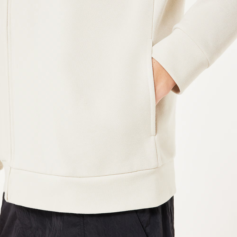 The Bark Full Zip Hoodie 2.0 puts you out front in your own comfort zone, thanks to soft recycled polyester and brushed cotton fleece. The adjustable drawcord at the hood and ribbed cuffs and hem ensure cozy warmth, and side pockets hold essentials. It’s finished with an oversized Oakley Bark logo up front and center.