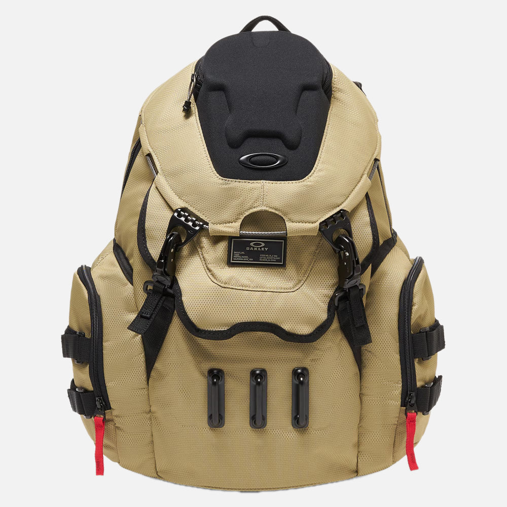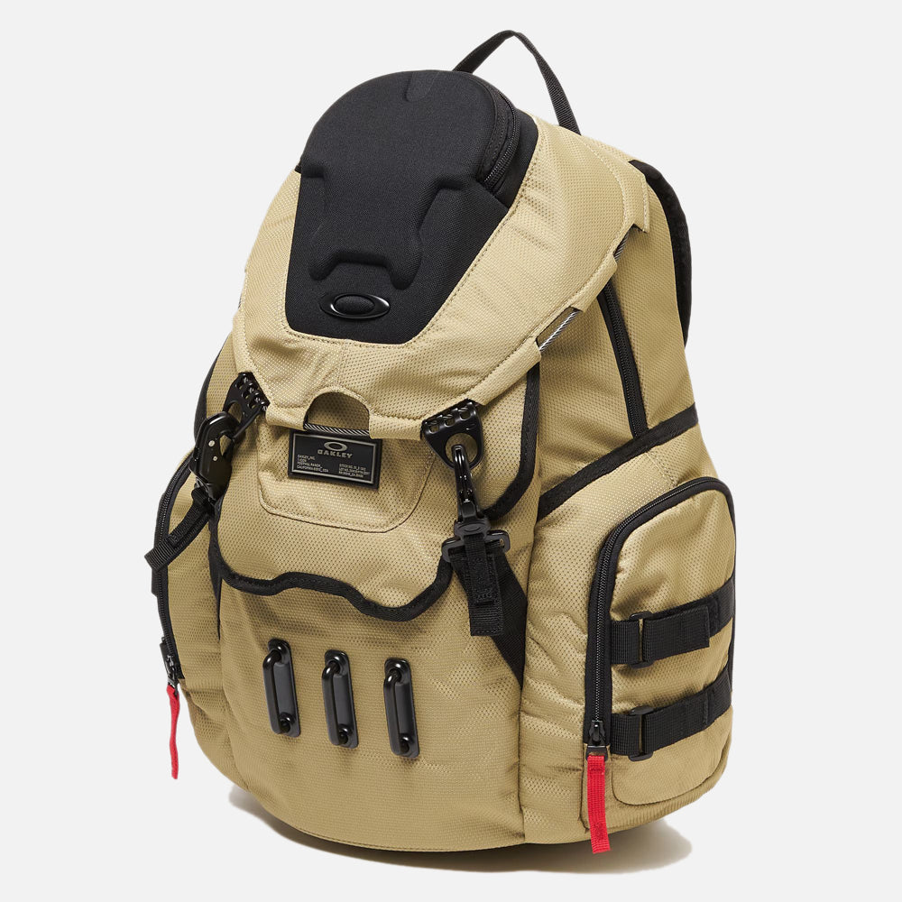 Totally rugged. Ultra-tough. Packed with every compartment, sleeve, zip and pocket you need for trail-bound adventures and campus-bound calendars. The smaller sibling to our bestselling Kitchen Sink pack, the Bathroom Sink RC Backpack features the same, durable Cordura exterior and standout trim, in a size just right for everyday missions. This pack starts in the main compartment with a side zip entrance and a padded interior sleeve that fits a 15-inch laptop. Inside, you’ll find multiple pockets for every little thing, including a hard case to keep eyewear safe. Outside there’s a compression strap to cinch stuff down, padded shoulder straps with a buckle for all-day comfort and a brushed media pocket on the lid. Finally, the Bathroom Sink is big on style: metal detailing and trim, a metallic Oakley logo and bold colors for storage-crushing perfection.