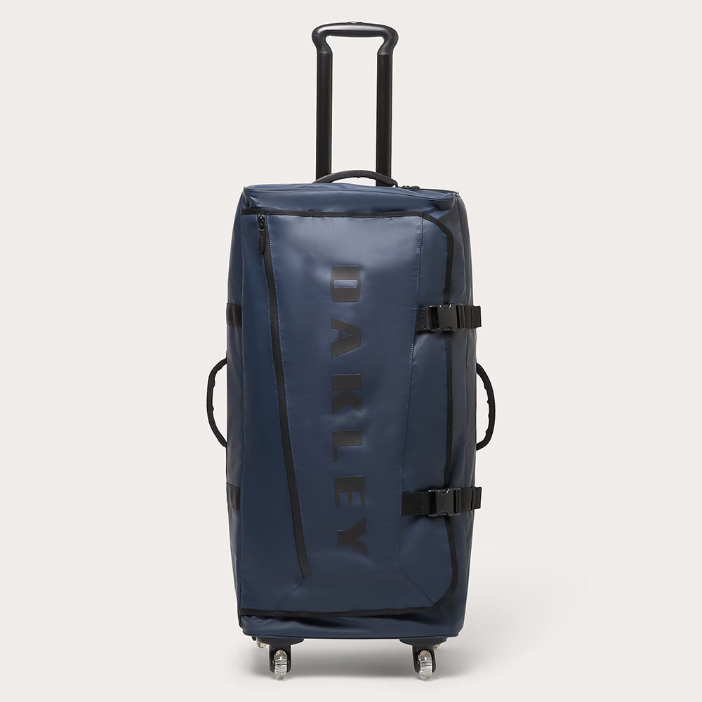 Three strategically placed handles and glide-friendly wheels make the Endless Adventure Travel Trolley ideal for weekend or extended getaways. It features recycled polyester, a secure buckled opening, and a top pocket with zip for quick and easy storage options. Interior zippered mesh pockets offer organized packing of your items, and it’s finished with a branded lining and tonal Oakley logo on the front.