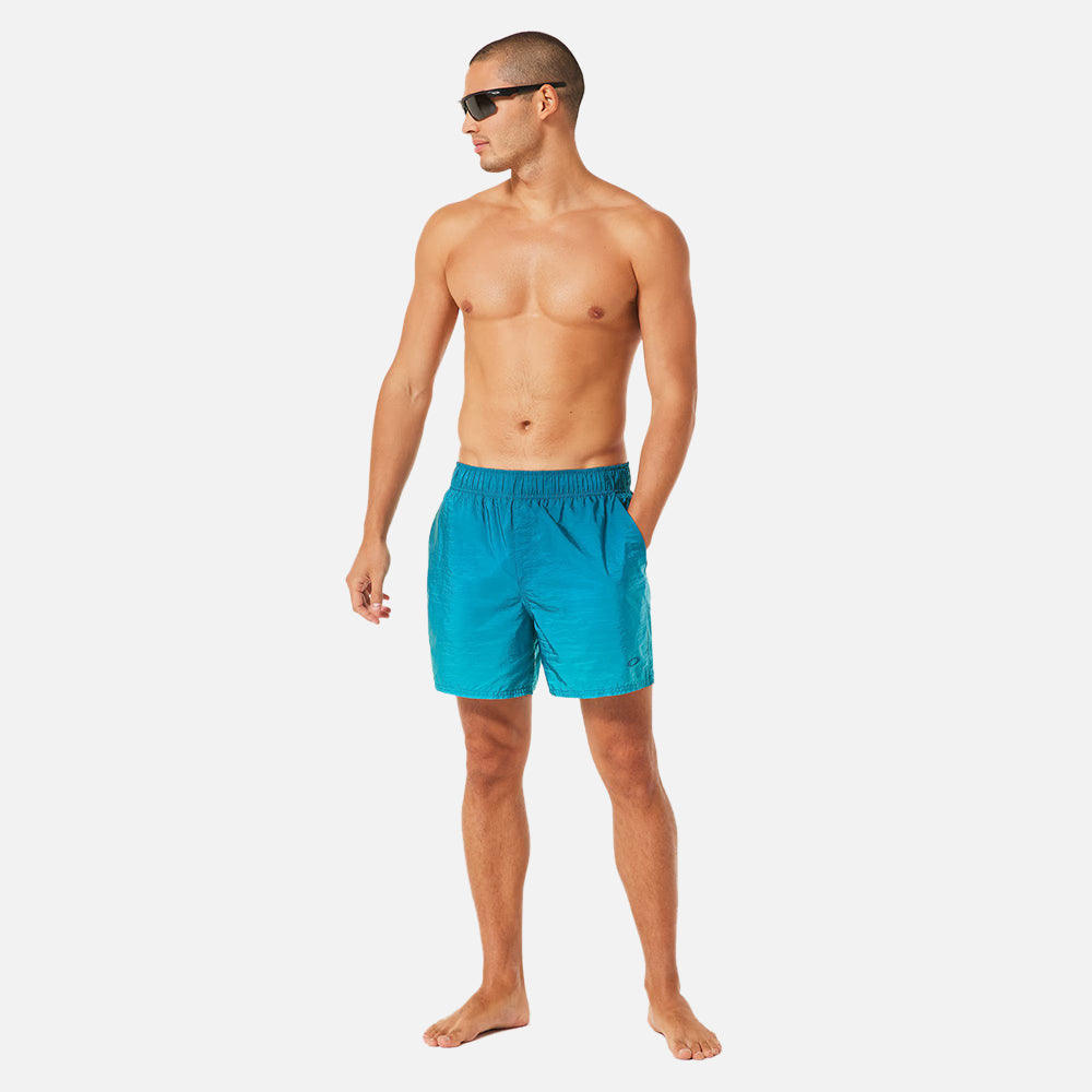 Look the part on your board or chilling by the sea in these 16” shorts with stylish all-over gradient print in three different summery shades. Made from 100% nylon, they are specially treated with Hydrofree technology to dry quicker when you get out of the water so you can say goodbye to that uncomfortable clammy feeling of wet fabric on the skin. The mesh lining doubles down on user comfort, providing ventilation and support, and there are two practical side pockets to hold your phone or wallet when the beach bar calls. Elastic waistband with discreet flat drawcord and Oakley Ellipse heat transfer logo on front.