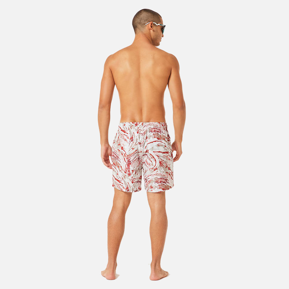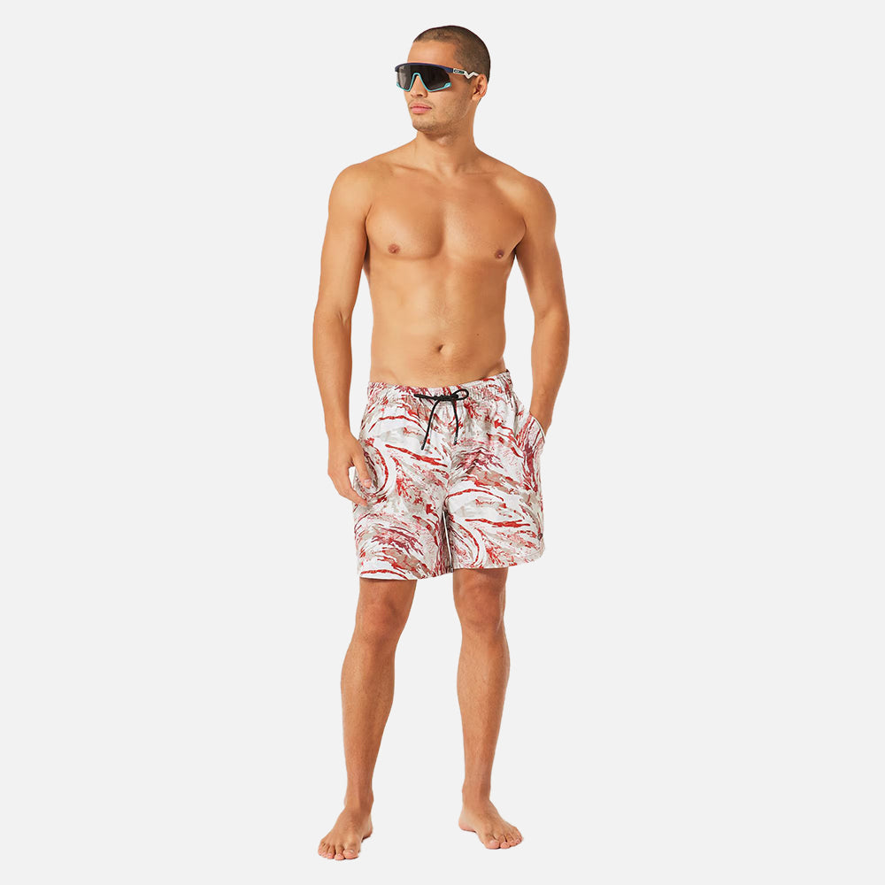 Regular fitting 17-inch beach shorts that will catch the eye with their choice of its colorful prints. Made from comfortable four-way stretch recycled polyester and elastane, they come with an elastic waistband with drawcord so you can adjust the fit as desired. Enhanced with Hydrofree DWR treatment to stop water from collecting on the fabric surface and keep you fresh and dry at all times, the shorts come with side pockets with mesh bags and sport a raised Oakley Ellipse logo on the left leg.