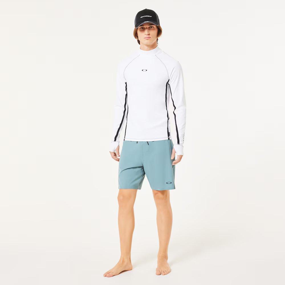 These knee-length shorts are perfect for dedicated boarders keen to hone their skills, but also those that just love the surfer style. Made from a quick-drying blend of recycled nylon and spandex, guaranteeing maximum comfort and flexibility in and out of the water, they feature a distinctive fixed waistband paired with tubular drawcord and branded tips. The minimalist front is decorated with the Oakley ellipse print logo, while on the other side a classy matte logo sits over the waterproof zip of the back pocket, also fitted with a practical elastic loop. Function and form rolled into one.