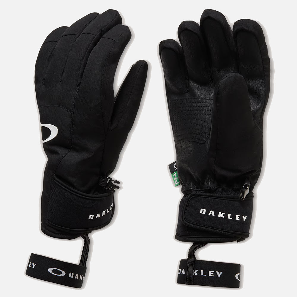 Classic five-finger gloves to keep your hands warm and dry as you tackle the trickiest off-piste slopes. Providing advanced lightweight insulation thanks to the application of 3M™ Thinsulate™ and breathable, waterproof comfort through Oakley’s exclusive FN Dry™ fabric technology, the gloves are also designed with a durable PU leather palm and strategic padding for exceptional protection in the most extreme conditions. The Velcro cuffs can be adjusted to fit and there is branding on the back of the hand, on the stylish jacquard elastic wrist leash and on the cuff itself.